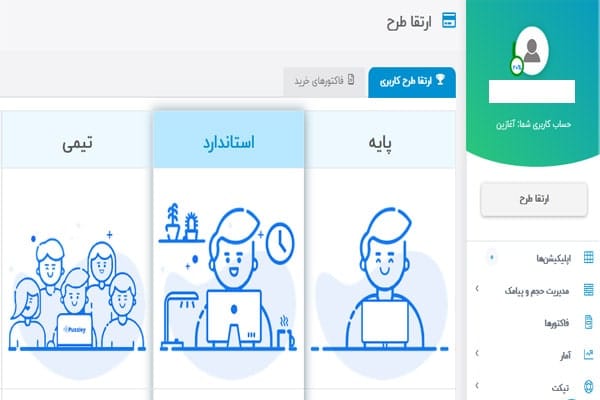 برای ارتقا پلن در منوی سمت راست روی دکمهی “ارتقا پلن” کلیک کنید.