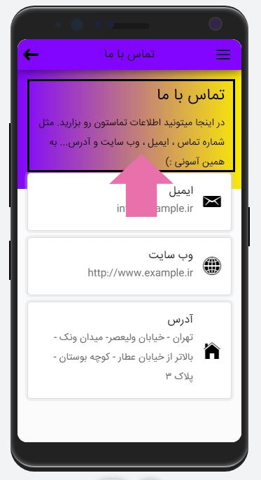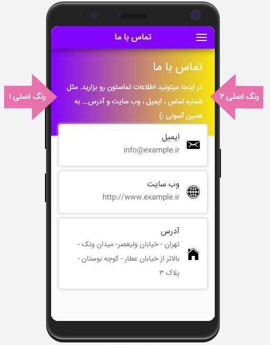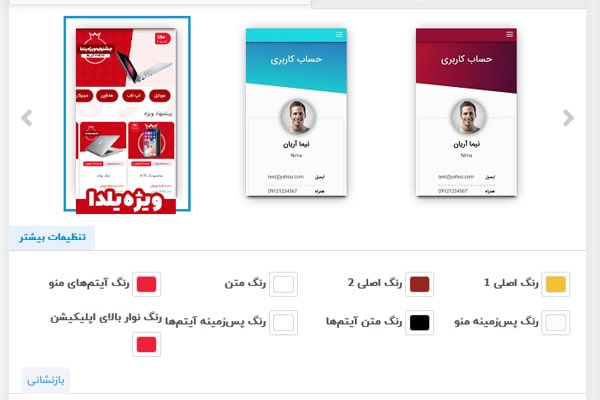 رنگی که در این قسمت انتخاب می کنید، رنگ اصلی اپلیکیشن شما است و در اکثر بخشهای اپلیکیشن میتوانید آن را مشاهده کنید.