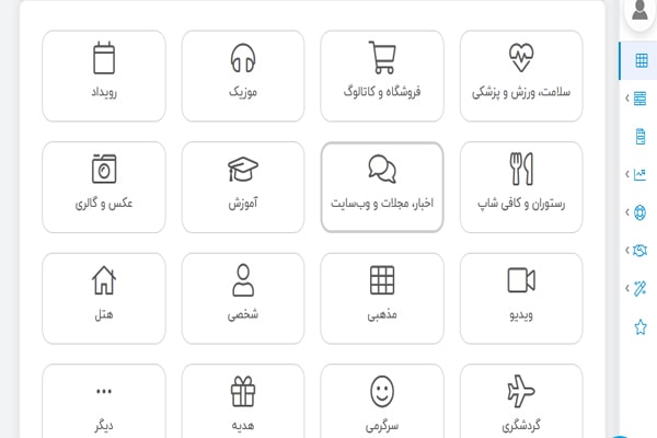 در این قسمت شما باید نوع دستهبندی اپلیکیشن خودتان را مشخص کنید به عنوان مثال اگر میخواهید اپلیکیشن فروشگاهی داشته باشید باید روی دکمهی “فروشگاه و کاتالوگ” کلیک کنید. اگر دستهبندی موردنظر شما موجود نیست دکمهی “دیگر” را انتخاب کنید. در نهایت هم دکمهی “بعدی” را کلیک کنید تا به مرحله بعد بروید.