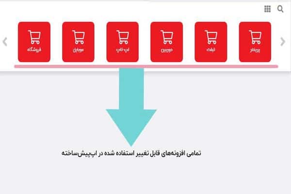 در این قسمت دستهبندیهای متفاوتی قراردادهشده است که با کلیک روی هر یک از آنها، اپلیکیشنهای پیشساختهی مربوط به همان دستهبندی برای شما نمایش داده میشود.