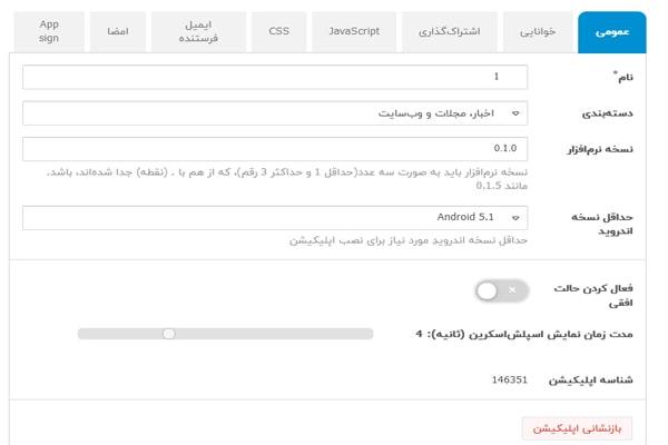 1. نام اپلیکیشن: با استفاده از این قسمت میتوانید نام اپلیکیشنتان را تغییر بدهید.