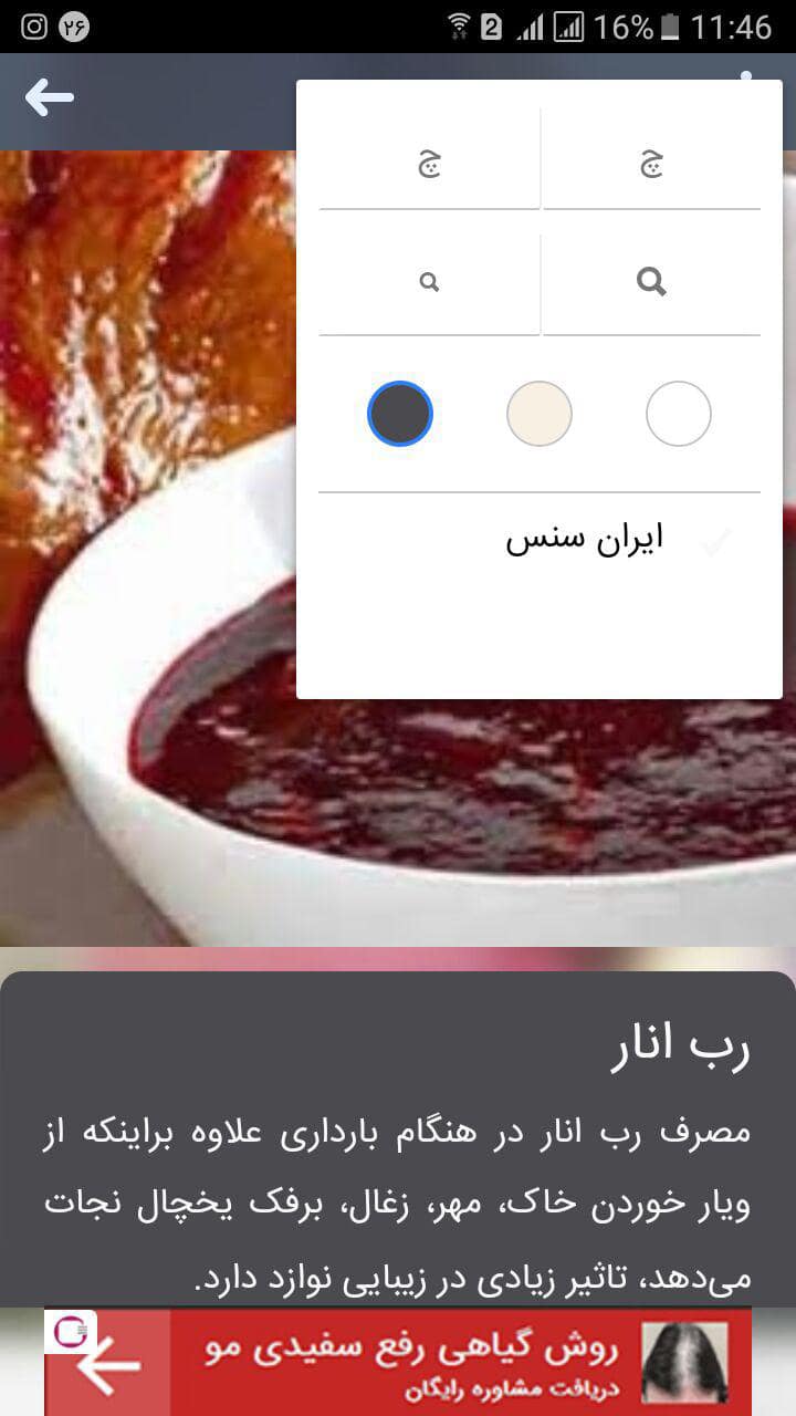 با استفاده از آیکون “چ” میتوانید متن را بزرگ یا کوچک کنید و با استفاده از آیکون “ذرهبین” میتوانید کل اجزای صفحه را بزرگ یا کوچک کنید.