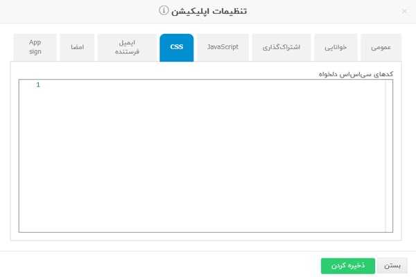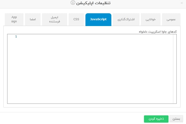 این بخش برای افرادی است که دانش برنامهنویسی دارند و میخواهند تغییراتی در اپلیکیشنشان انجام دهند. شما میتوانید کدهای اختصاصی Javascript مدنظرتان را در این بخش قرار دهید. این کدها روی تمام اپلیکیشن شما اعمال میشود.