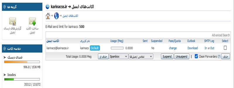 وارد بخشEmail accounts شوید.