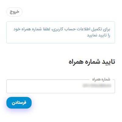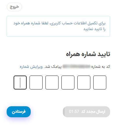 شما باید از این قسمت شماره همراه خود را تایید کنید. روی گزینهی “تایید شماره همراه” کلیک کنید. تصویر زیر را مشاهده خواهید کرد.
